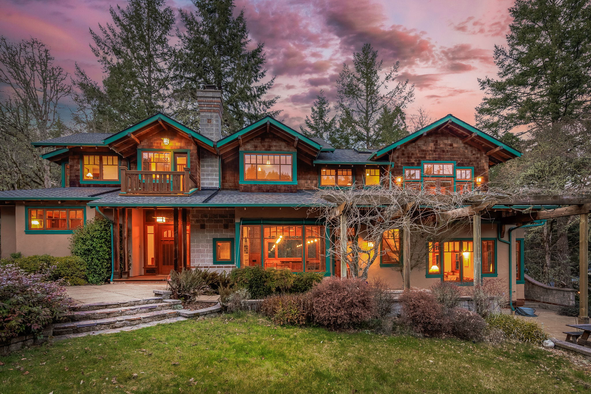 What is quintessential to Arts and Crafts architecture? Handcrafted/natural materials, functional design, and features like exposed wooden beams, sturdy stone and wide eaves. These homes prioritize built-in features, and a strong connection to nature. 4040 Southpointe has it all! Designed by James W. Givens and built in 1996, this award-winning residence has been recipient of the 1998 Best of Show during the Eugene Tour of Homes, 2nd in the 2000 AIA Southwestern Oregon People's Choice Award and Tour, and has been featured in Patterns of Home (2002) and New Arts and Crafts Houses (2006). Just minutes to shops including grocery and more you will find this home nestled in the beloved Southpointe neighborhood. Throughout, you'll find beautiful Arts and Crafts details that feel both timeless and livable: warm fir floors, massive recycled resawn beams overhead, vertical grain Douglas fir trim, and solid cherry kitchen cabinetry with hand-carved touches. The kitchen is both beautiful and functional, with a Viking gas range, acid-etched marble counters, and a generous butcher block island perfect for daily life and entertaining alike.One of the home's most delightful features is its connection to the outdoors—nearly every room opens to a patio, deck, or balcony, inviting you to enjoy morning coffee outside. Large windows throughout let you watch the seasons change from inside. The two lots totaling 1.7 acres include lovely landscaped areas, a meandering trail through the back, and a peaceful oak meadow in front. The detached two-car garage includes a studio apartment above with full bathroom, kitchenette, and its own water heater—perfect for guests, family, or creative pursuits. With its blend of gathering spaces and quiet nooks, this home embraces both togetherness and solitude. It's a place that truly feels like home.
